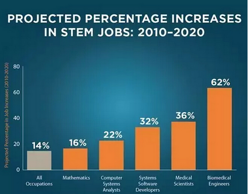 簡而言之,STEM工作越來越多,STEM美國本土畢業生越來越少,于是存在的人才空缺就會由外國留學生來填補。