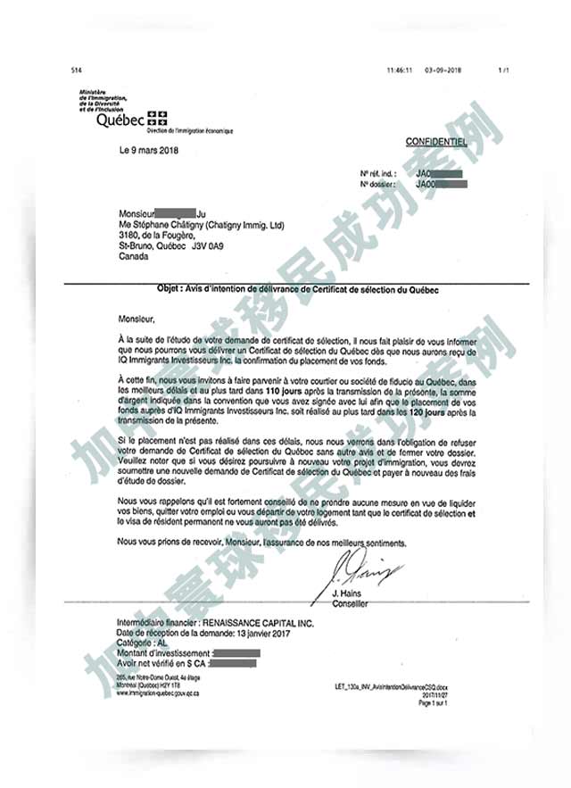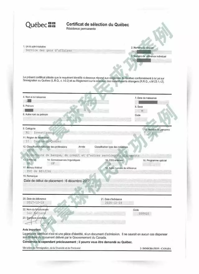 J先生  魁投免面試通過(魁北克投資移民項目)