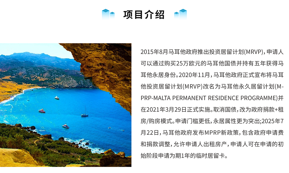 ![]() 政策寫入移民法案,安全有保障 2015年8月,馬耳他國債投資移民項目推出,投資25萬歐元即可獲得馬耳他永久居留權利。
