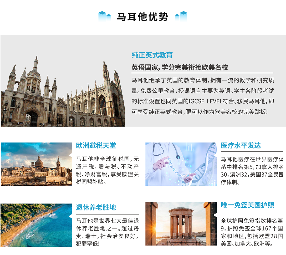 如果您有海外投資、開辦企業避稅、分散國內投資風險、海外貿易等需求,或是希望在馬耳他工作、享受馬耳他超優質的教育和醫療服務,抑或是渴望擁有 一張歐洲自由通行證,那么馬耳他投資居留計劃都是您的絕佳選擇! |