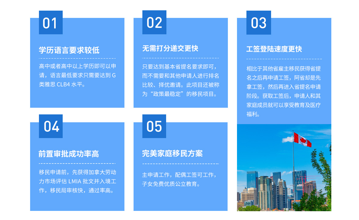 加拿大阿爾伯特省提名移民項目(Alberta Immigrant Nominee Program, AINP)是阿省政府和加拿大聯(lián)邦移民局一起操作的加拿大經(jīng)濟(jì)類移民項目,主要目的是通過吸引和保留可隨時的加拿大移民來帶動阿省的經(jīng)濟(jì)發(fā)展。獲得阿爾伯特省提名的申請人,連同配偶和子女,可以作為阿省的被擔(dān)保人向加拿大聯(lián)邦申請永居簽證。加拿大阿省雇主擔(dān)保移民的條件較低,一人申請全家可移民加拿大。
