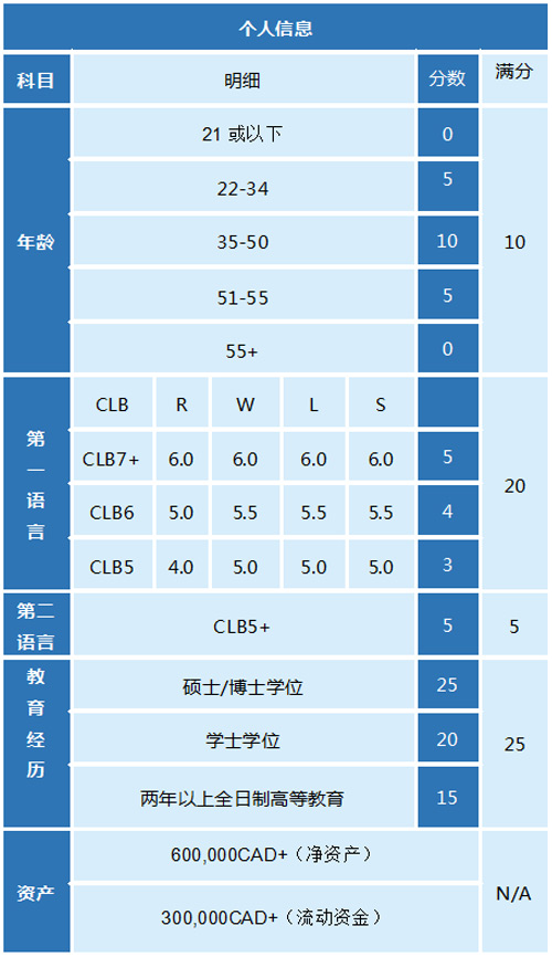 NB省企業家移民EOI評分標準