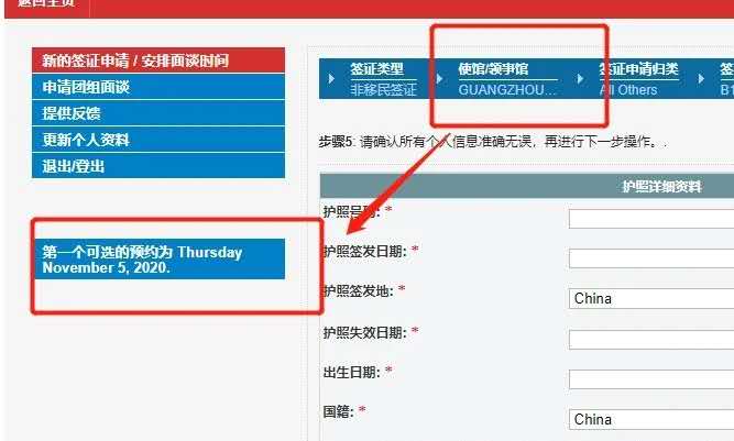 廣州領事館最新可預約面試時間為:2020年11月5日。