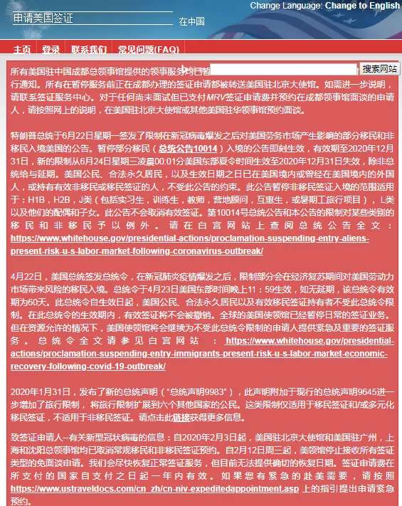 4月22日和6月22日特朗普繼續簽署行政令,以及8月12日的修改,部分簽證持有者仍然不能入境美國。