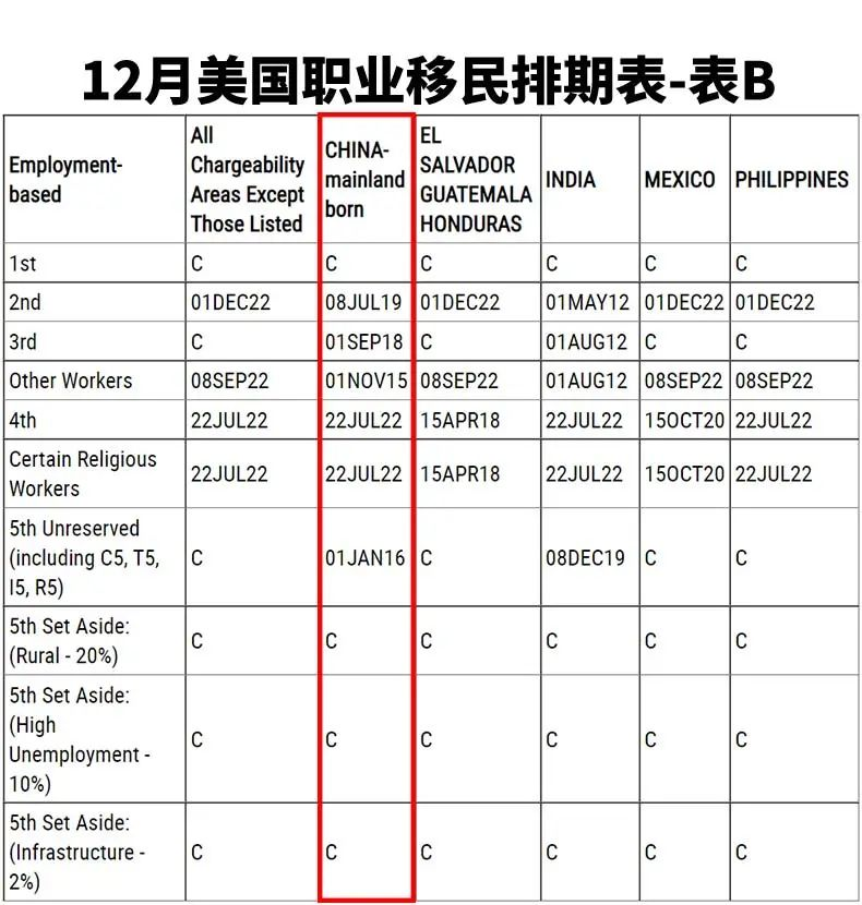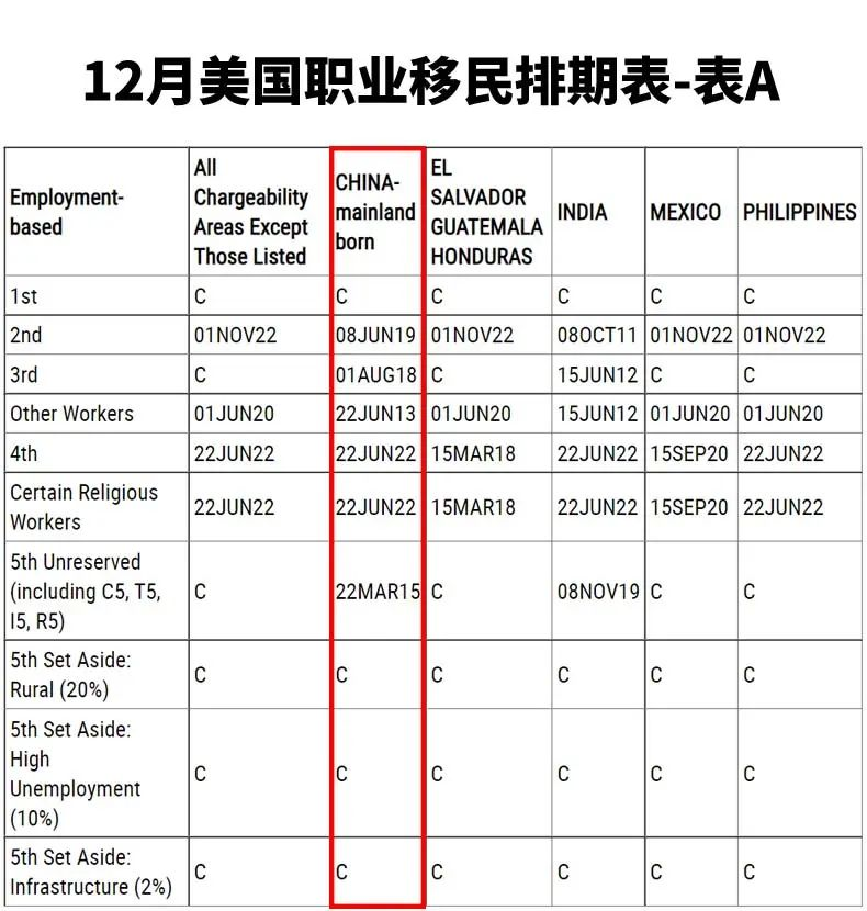 其中,值得大家注意的是,12月美國職業移民排期出現了全球排期: