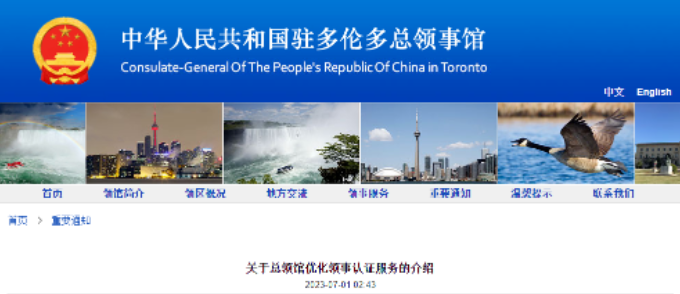 駐多倫多總領館發布了關于優化領事認證服務的介紹,內容如下: