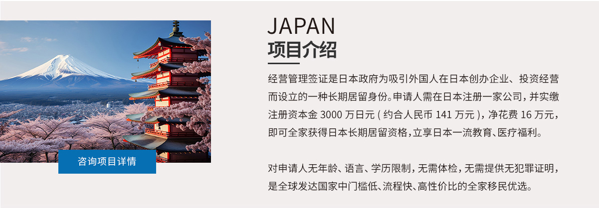 項(xiàng)目介紹 申請(qǐng)要求 項(xiàng)目?jī)?yōu)勢(shì) 申請(qǐng)流程 日本生意