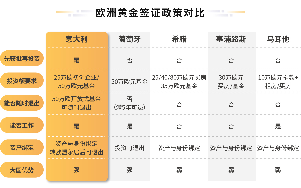 黃金簽證對比