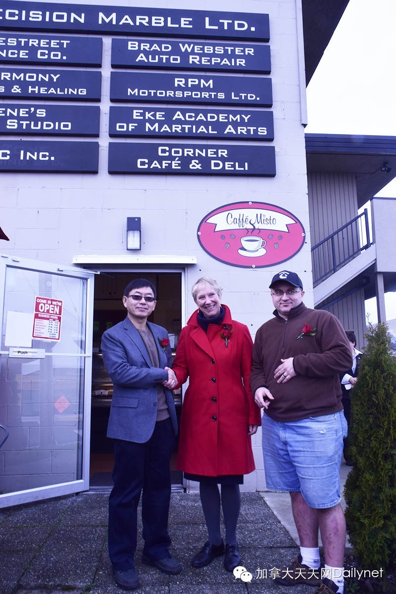 市長(zhǎng)Desjardins拿起Muffin 吃了一塊,“嗯,很好吃!”她還笑著招呼坐在咖啡店里面的小姑娘也來(lái)吃一塊。這個(gè)咖啡店并不大,四張餐桌,一排高椅,墻上的油畫(huà)和窗前的蘭花把小店裝點(diǎn)得溫馨舒適。市長(zhǎng)談起百忙之中還訪問(wèn)這家小店的緣由,她說(shuō):“小商業(yè)的發(fā)展在地區(qū)發(fā)展中起著重要的作用。象Café Misto 這家店,地處三條路的交匯點(diǎn)上,旁邊就是Wholesale,大家購(gòu)物、工作的間歇就可以來(lái)這里休息、喝點(diǎn)東西。一個(gè)城市有越來(lái)越多象這樣的便民小商家,大家的生活就更方便,我們的城市也會(huì)越來(lái)越繁榮”,Desjardins接著說(shuō),“另外,我今天來(lái)到這里,也希望讓大家知道,Esquimalt市歡迎來(lái)自世界各地的投資和商家”。她還表示,Esquimalt市政府會(huì)一如既往地支持小型商業(yè)的發(fā)展。