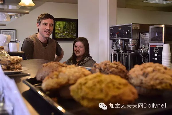來(lái)自中國(guó)大陸的M先生是這家Café Misto的新業(yè)主。2013年11月,他通過(guò)BC PNP商業(yè)投資移民項(xiàng)目買(mǎi)下了位于2865 Foul Bay Rd.的Café Misto。在老店主的幫助下,他漸漸熟悉了加拿大的經(jīng)營(yíng)環(huán)境,生意也越做越好。中國(guó)人講究“新年新氣象”,因此M先生在2015新年伊始,就開(kāi)始著手籌備Esquimalt的分店開(kāi)張。“謝謝您來(lái)!今天新店開(kāi)業(yè),所有咖啡和甜品都免費(fèi),希望大家?guī)笥褌兌喽喙忸櫍?rdquo; M先生一邊與前來(lái)祝賀的朋友們握手,一邊表達(dá)自己的感謝,“今天所有的Muffin都是我們的店員一早新烤的,大家來(lái)嘗嘗!”