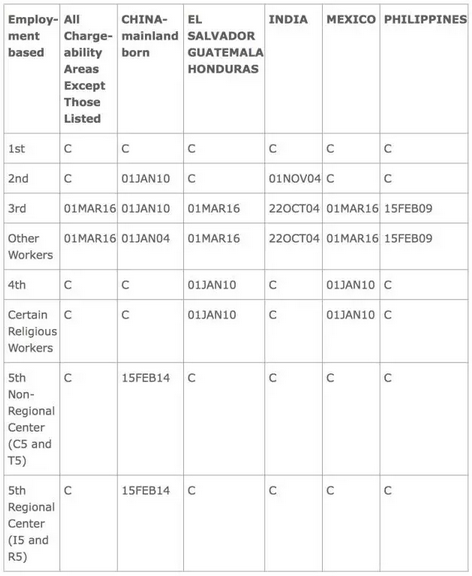 1. 按照表A,如果你的優先日在2014年2月15日之前,并且I-526已經獲批,你就可以參加廣領館面試或者在美國遞交I-485申請,馬上可以獲批簽證或綠卡;