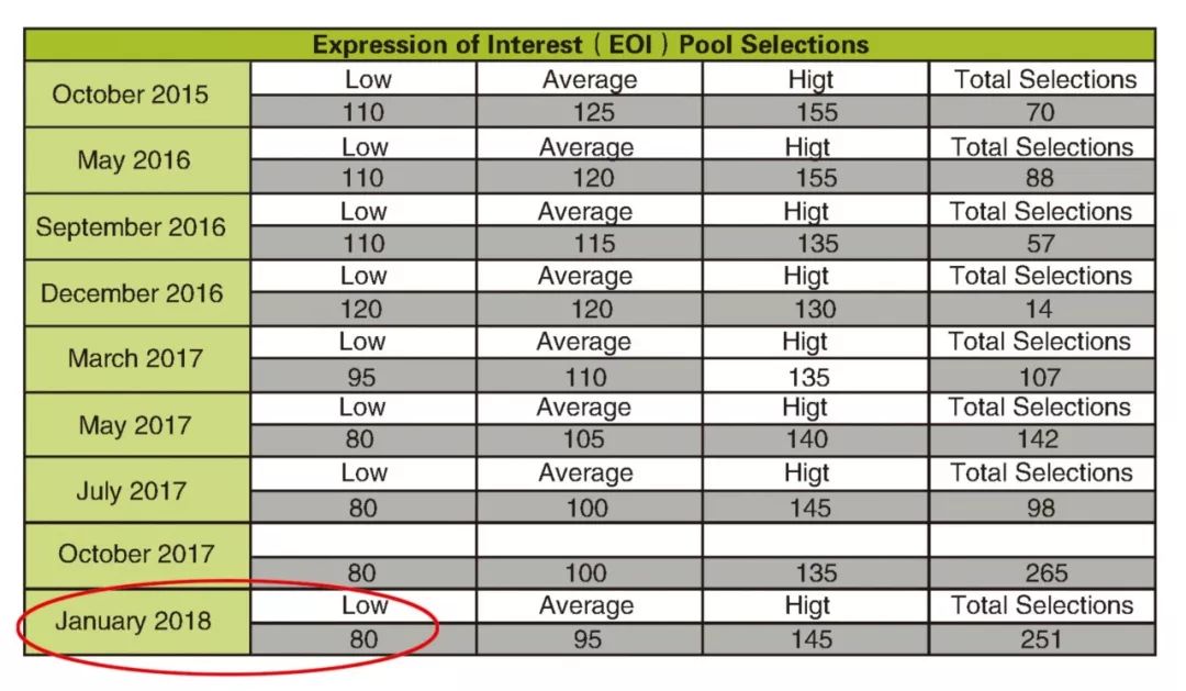 從2015年10月到2018年1月,薩省企業家移民共進行了9次EOI篩選,呈現如下趨勢: