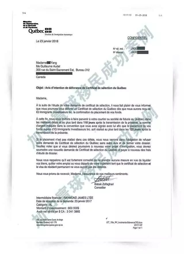 喜訊:2018年1月24日,加中寰球又三客戶已收到好消息!