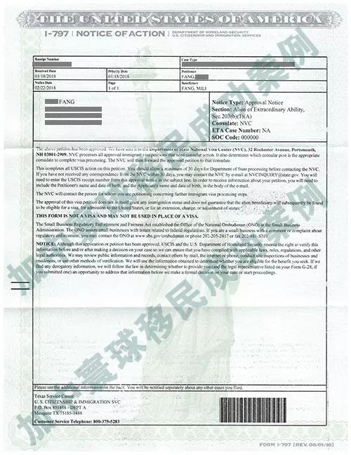 從遞交材料到收到美國移民局I-797通過信,僅用了一個月時間!恭喜方女士!