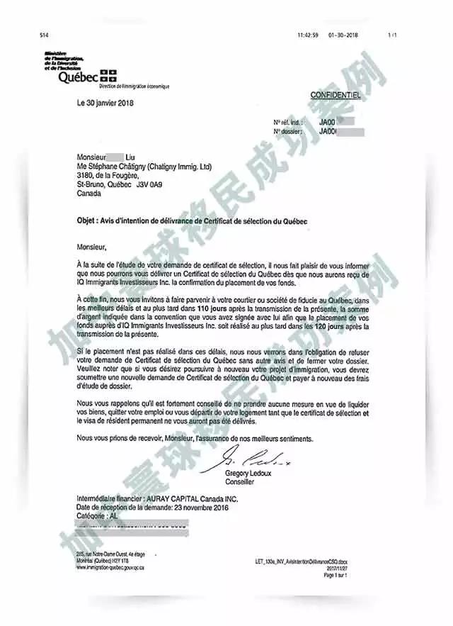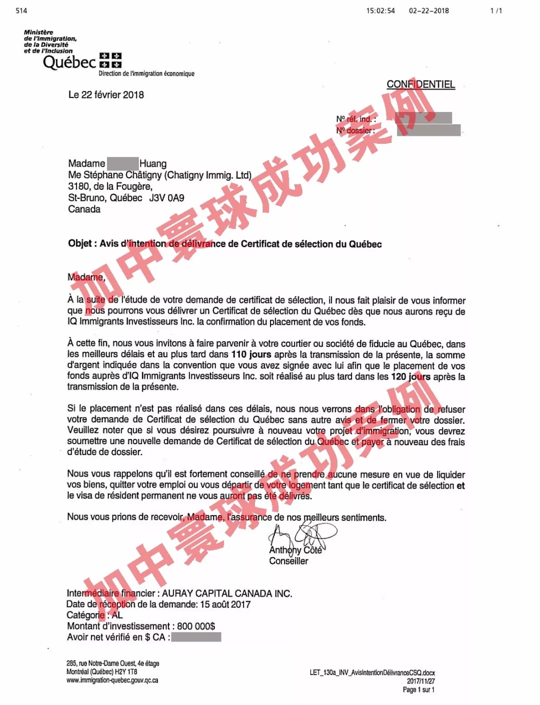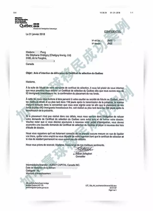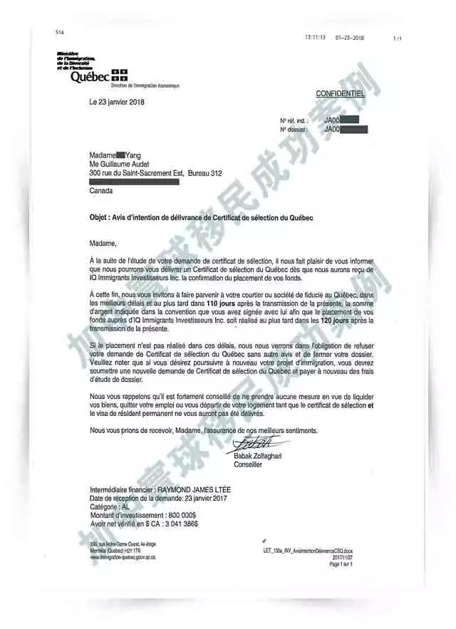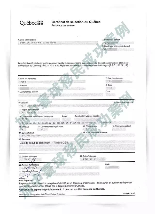 下面,就給大家展示部分加中寰球移民2017-2018魁省經(jīng)典成功案例。