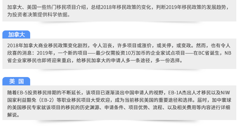2019年1月26日加拿大、美國(guó)熱門移民項(xiàng)目說明會(huì)!