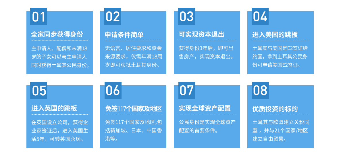 該計劃為購買房地產或攜帶資本超過一定門檻的外國人提供獲得土耳其國籍的資格。該計劃最顯著的特點是,投資者不必居住在土耳其就能獲得