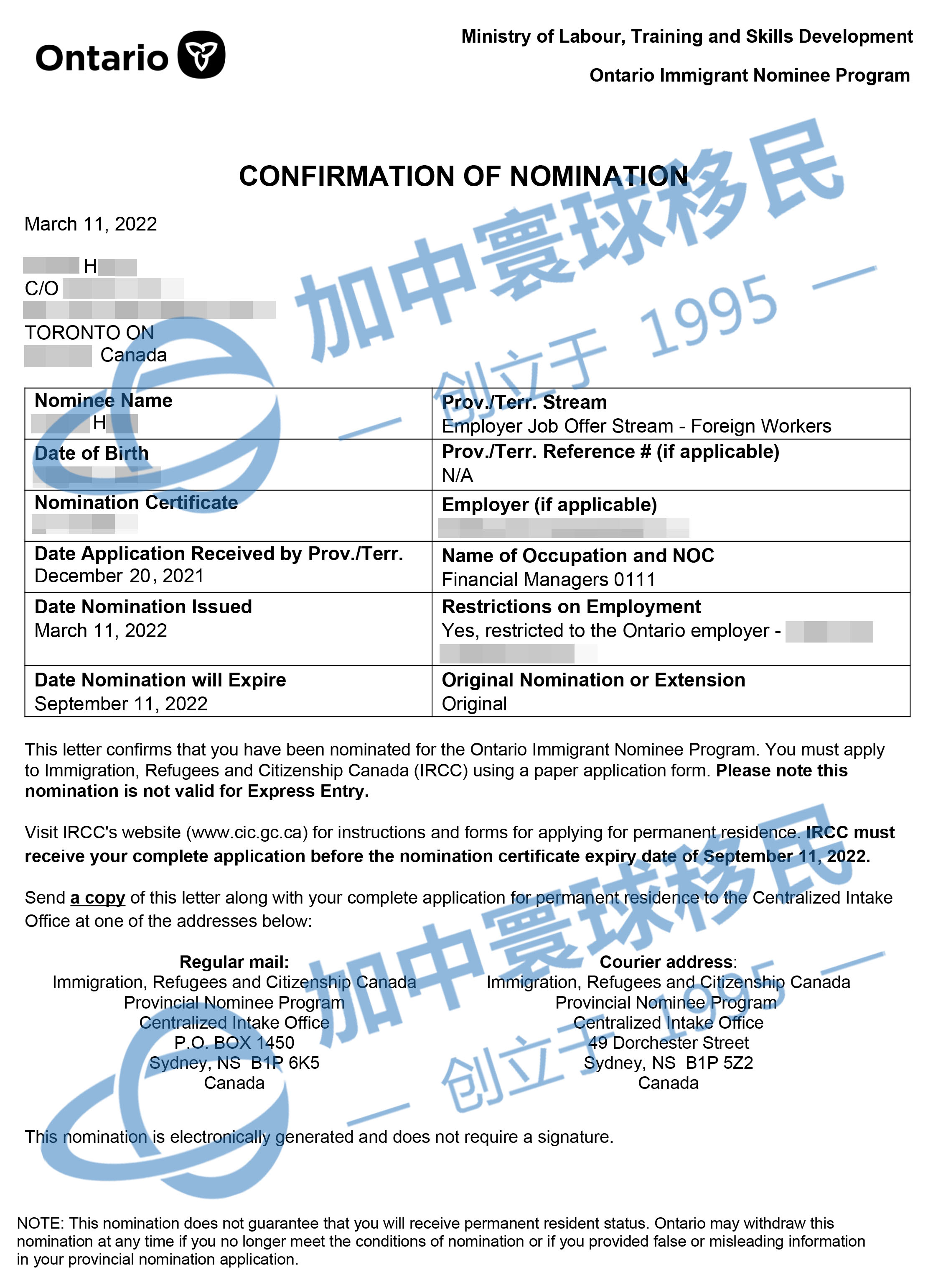 安省雇主擔保H先生(財務經理)入池3周獲邀請, 2.5個月獲批