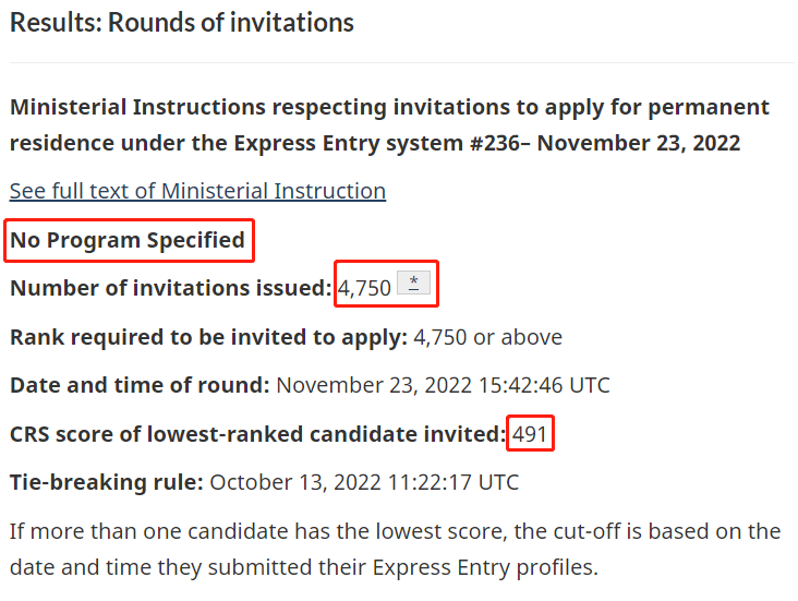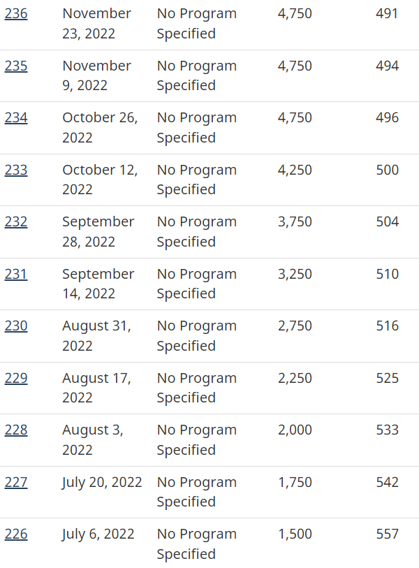 此次抽分,是恢復全類別抽分以來的最低分!而且邀請人數與上次保持不變,4,750人受邀請!如果申請者剛好491分,則需要在2022年10月13日,05:22 EST之前入池才能在此輪被邀請。
