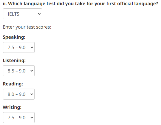 根據現有政策,如果你是一名中國留學生,本科學歷,不滿30歲,在加拿大有一年的0AB工作經驗,那雅思則需要:7.5,8.5,8.0,7.5,也就是語言成績的滿分,則達到474分