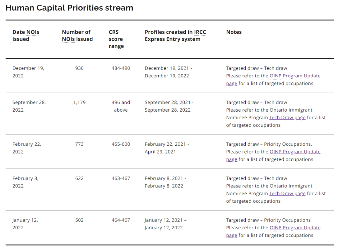 加拿大時間2022年12月19日,安省省提名辦公室(OINP)發布了最新抽選情況,向快速通道候選人發放936份邀請,此輪為科技類優才定向抽選(Tech Draw-Human Capital Priorities)。