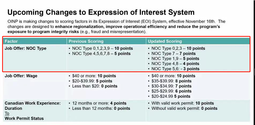 此次加拿大安大略省移民政策調整主要是針對安省雇主擔保移民(海外雇員類別),新法案根據NOC code 2021新版,重新制定雇主擔保移民的EOI入池細則,并于2022年11月22日開放。
