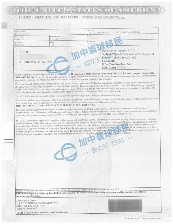 加中寰球客戶H女士(中醫師)申請美國EB-2雇主擔保移民項目,于2022年4月26日順利獲批I-140申請! 有關詳情如下: