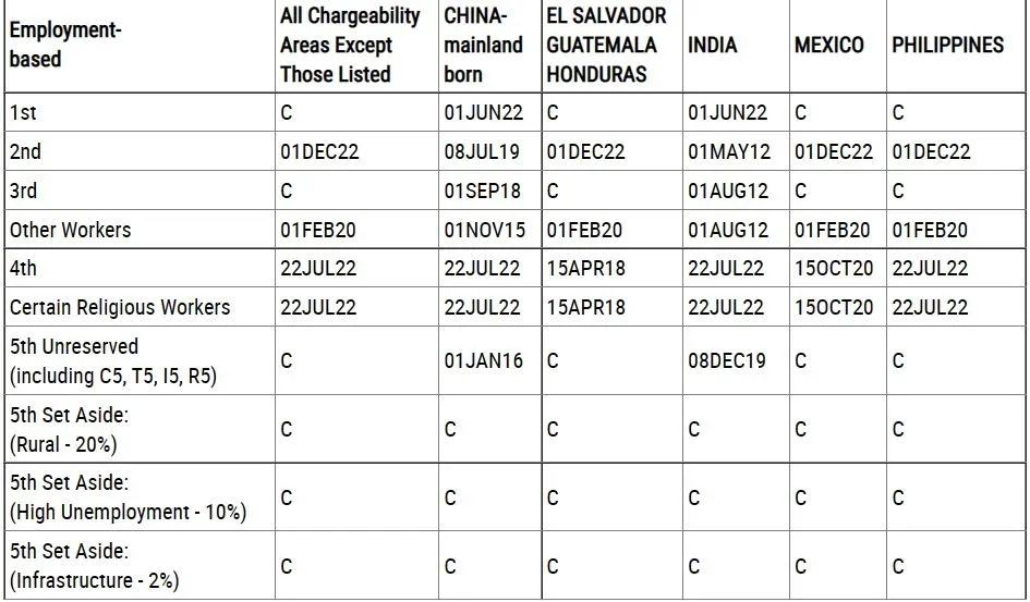 ·EB-1(杰出人才)出現(xiàn)排期,為2022年6月1日;